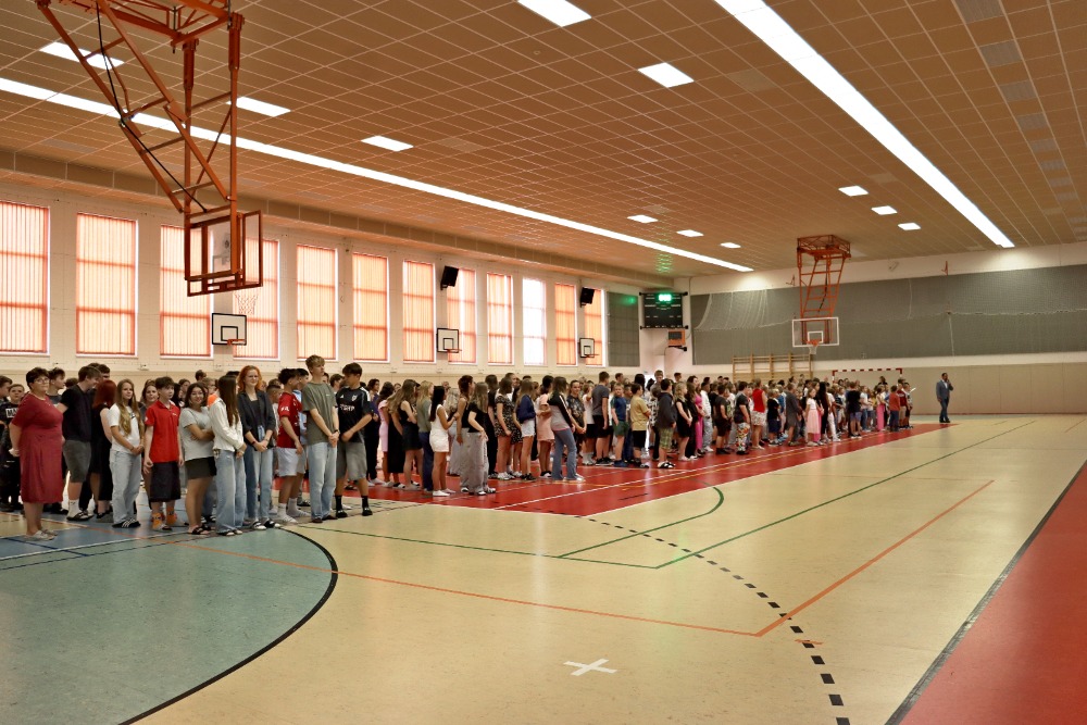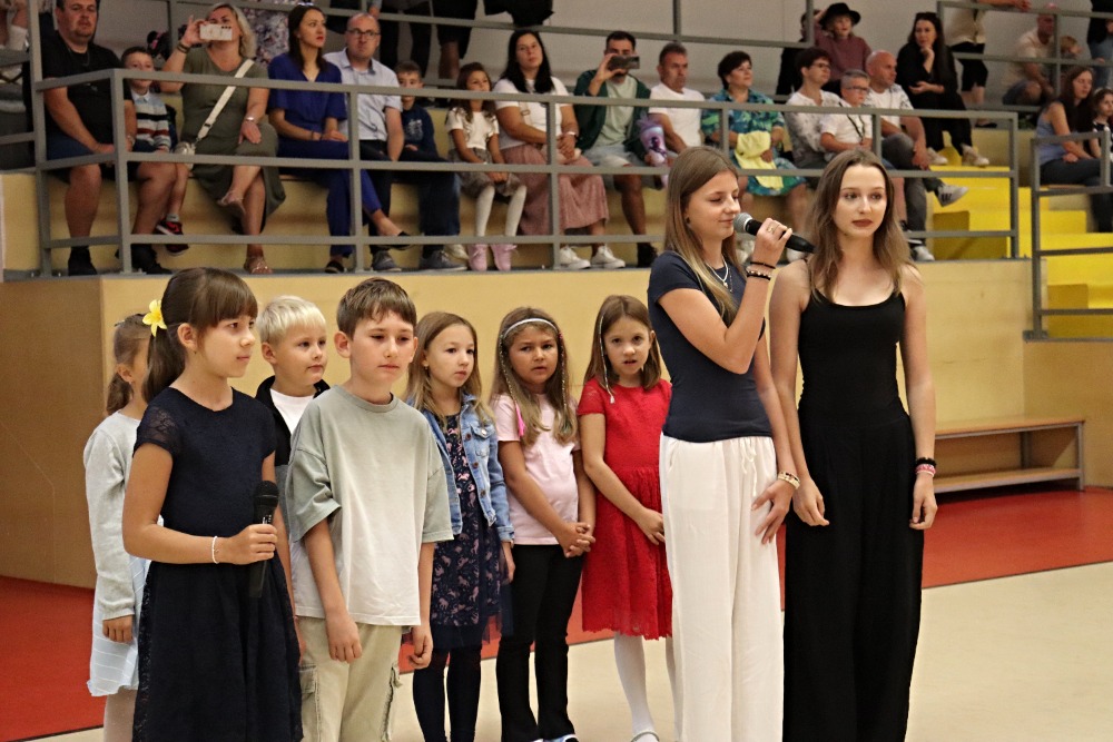 Zahájení nového školního roku proběhlo jako vždy ve sportovní hale. Žáci druhých – devátých