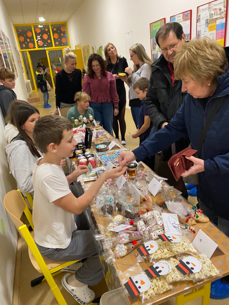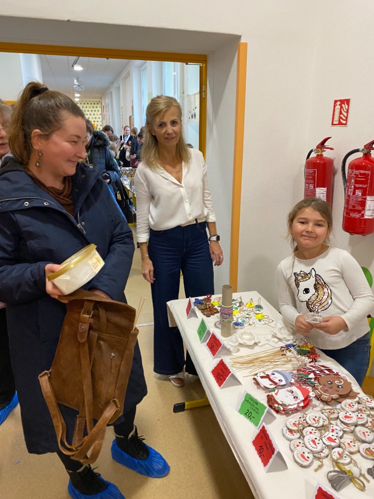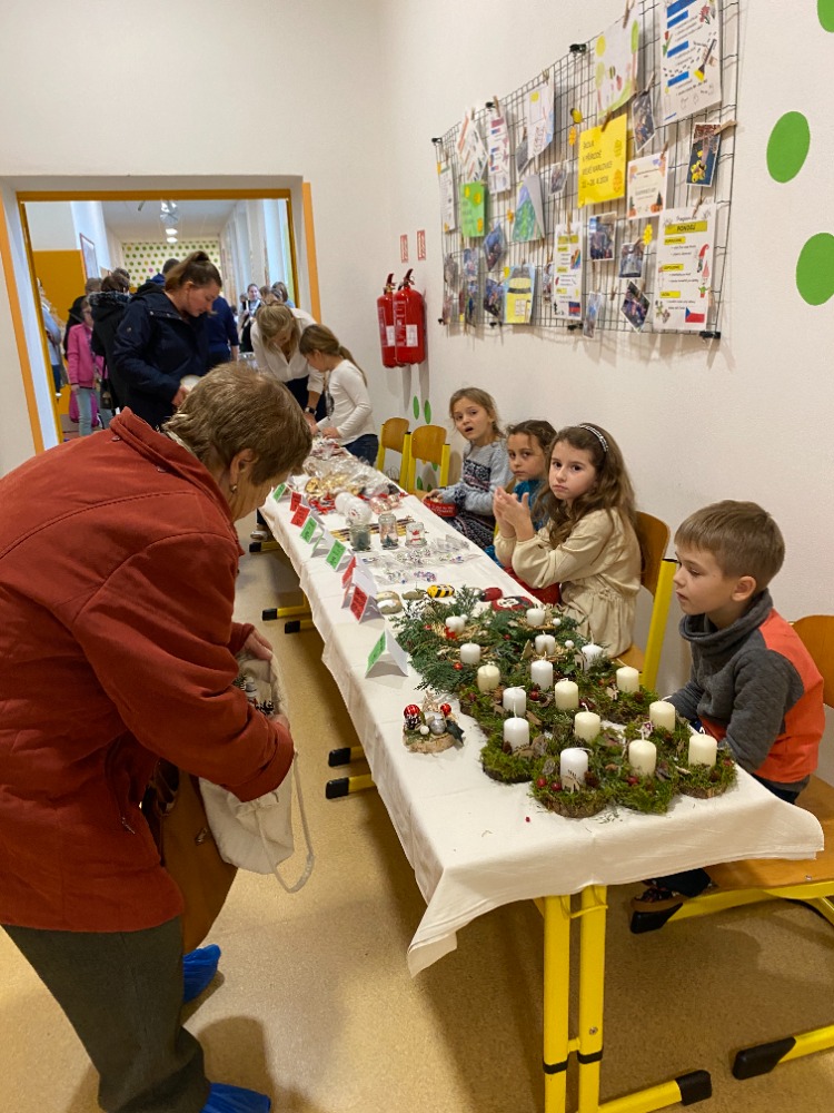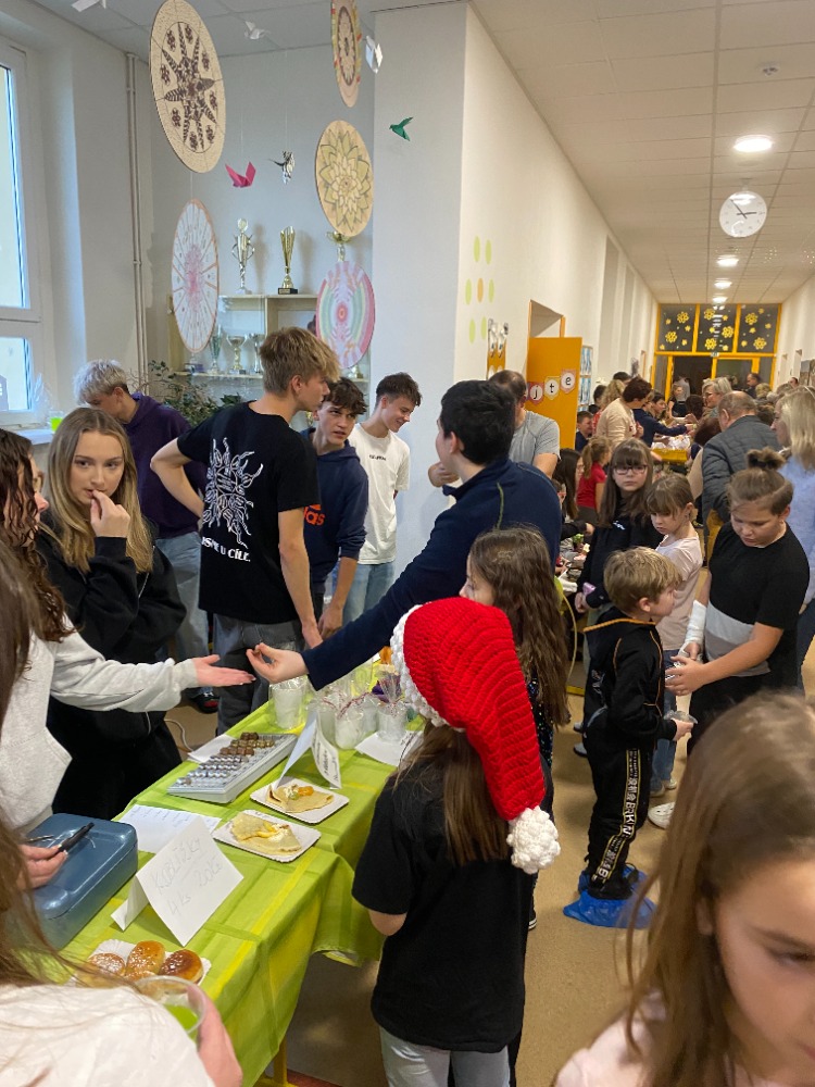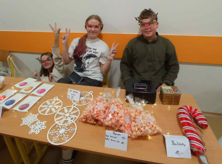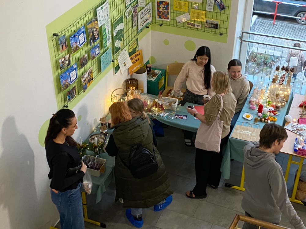 Jedna z tradičních akcí školy, která náhodnému návštěvníkovi může připadat jako organizovaný chaos. Třpytky jsou ve vlasech prodávajících, na stole, na výrobcích. Po jarmarku je paní uklízečky objeví i tam, kdy by skutečně být neměly.