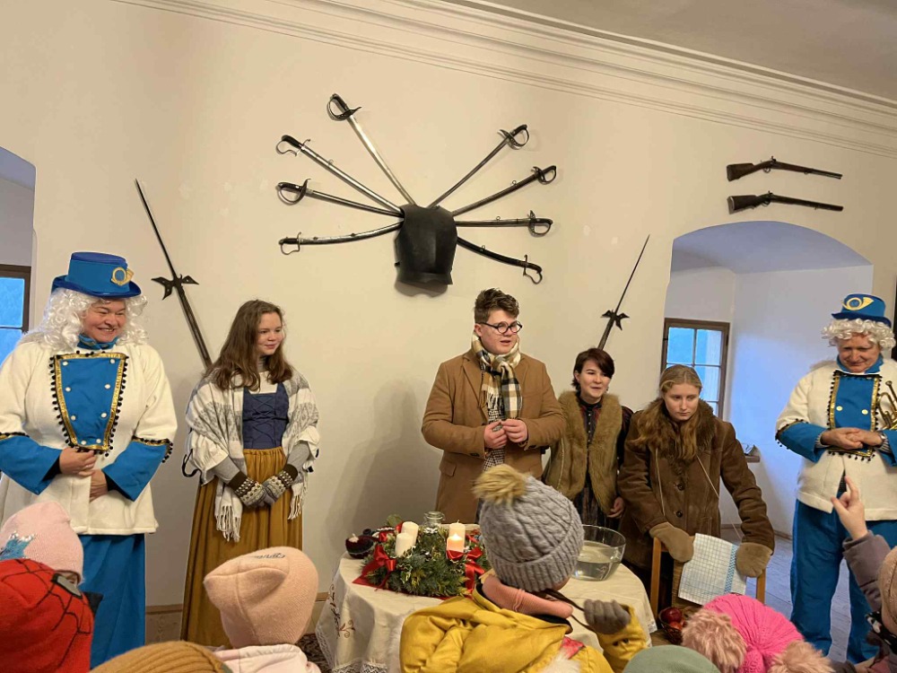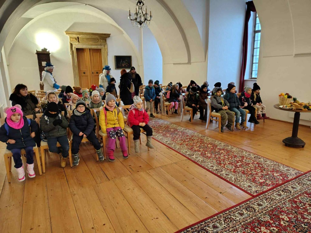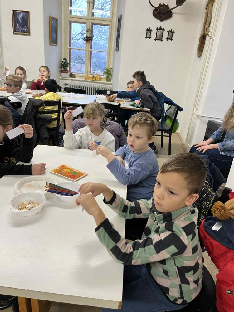 V průběhu prohlídky se děti v komnatách seznamovaly s vánočními zvyky a tradicemi. Společně se zpívaly koledy v doprovodu hudebních nástrojů. Součástí programu bylo i tvoření vánočního přáníčka.