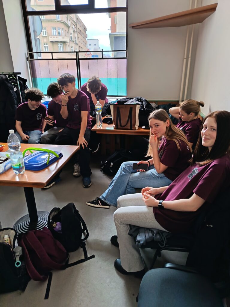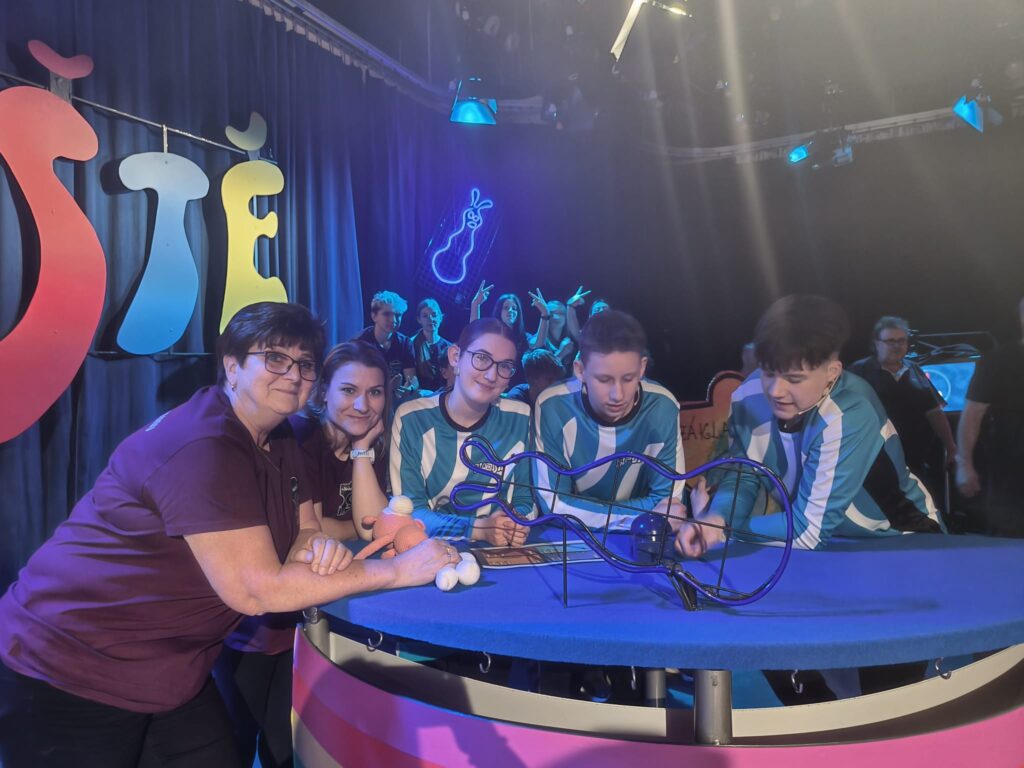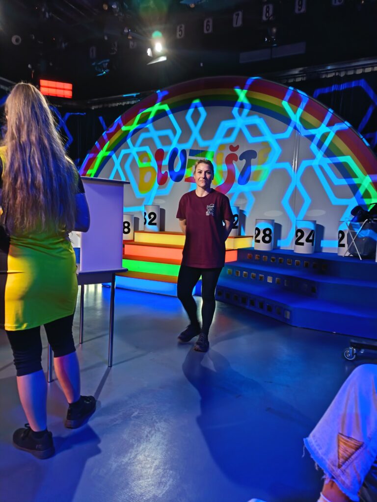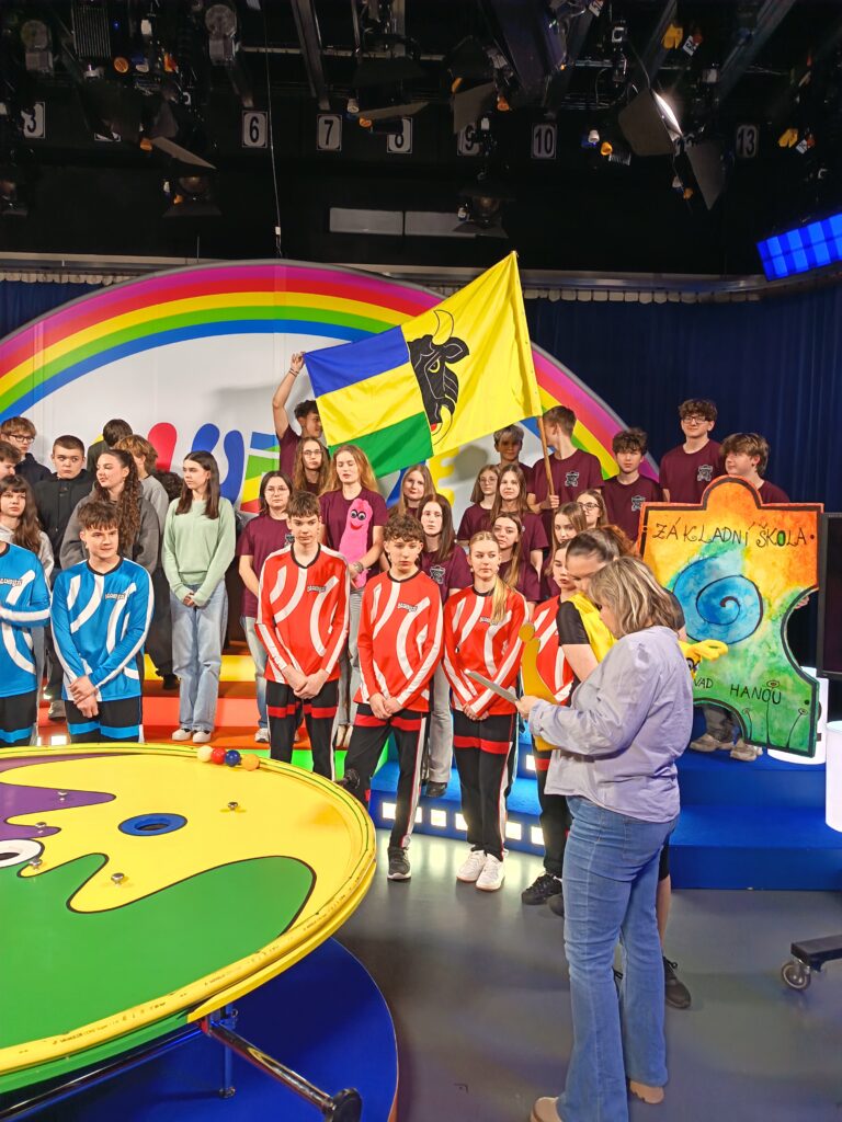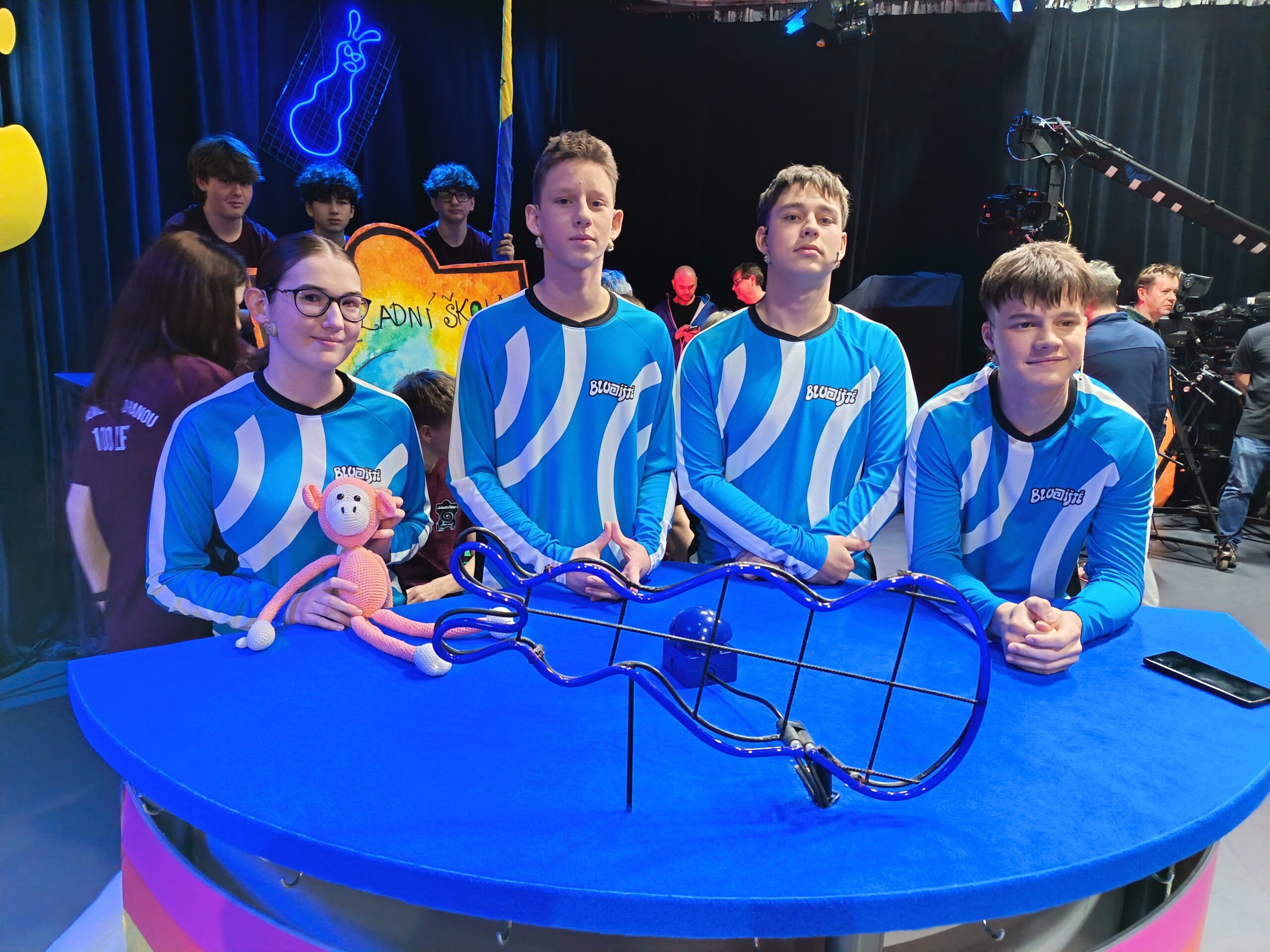 Na začátku školního roku jsme se domluvili, že bychom se mohli společně zúčastnit soutěže Bludiště. Třídní paní učitelka Vojancová nás přihlásila a v lednu jsme dostali pozvánku na natáčení do České televize v Ostravě. Dne 25. února v šest hodin ráno jsme vyrazili autobusem směr Ostrava – natáčecí studio. I když tuto soutěž známe z televizního vysílání, byli jsme plni napětí a očekávání, hlavně soutěžní družstvo ve složení Adam Kotek (9.B), Oto Skalička (9.A), Zdeněk Žilka (9.A) a kapitánka Alžběta Kumžáková (9.A). Ve studiu se soutěžící hned dostali do rukou kostymérek, maskérek a asistentek režie, aby byli včas připraveni na soutěžní úkoly. Proti nám se postavil silný soupeř z Gymnázia J. Wolkera v Prostějově, který vyhrál již předchozí dvě kola. Po rozpačitém začátku jsme pomalu a jistě začali dohánět jejich bodový (bludišťákový) náskok. Před luštěním tajenky již bylo skóre téměř vyrovnané. Indície nám pomohly k jejímu vyluštění a tím jsme získali potřebný počet bodů (bludišťáků) k vítězství a postupu do druhého kola. Získané zkušenosti z kola prvního jsme uplatnili v kole druhém. I v něm nám pomohla zvýšit počet získaných bludišťáků p. uč. Adamíková, které se podařil splnit úkol pro učitele. Celkově se nám dařilo a po závěrečném úkolu jsme měli nevídaný počet 52 bludišťáků a stali jsme se vítězi. Jen na závěrečném balancovníku se nám zatím moc nedařilo, ale budeme se o to pokoušet v posledním třetím kole. Hodně štěstí!!!