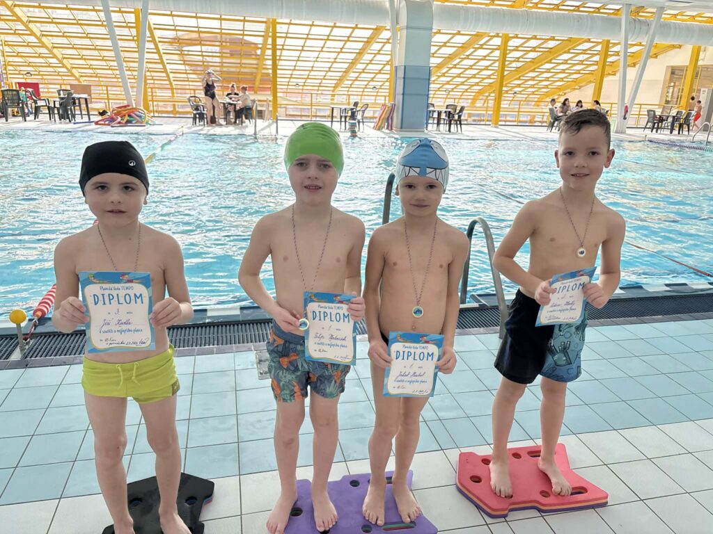 Plavecký výcvik tříd 1.A, 1.B, 3.A a 4.A byl úspěšně dokončen a děti během kurzu udělaly velký pokrok.