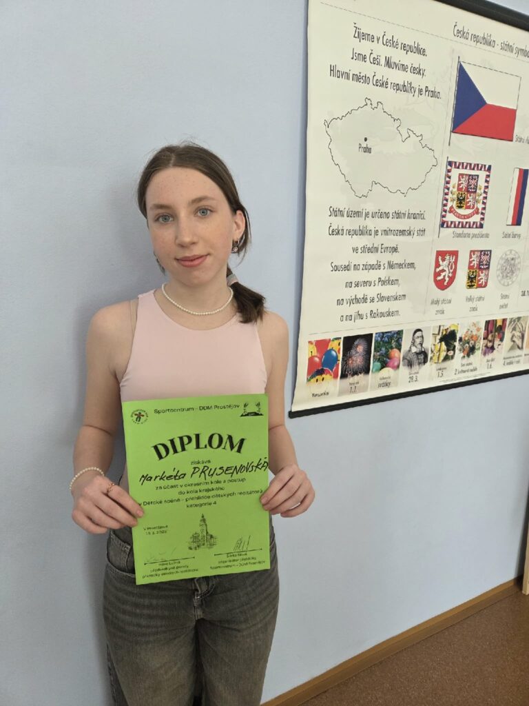 Dne 19. března 2026 se konalo Okresní kolo recitační soutěže v Prostějově, kterého se zúčastnilo 12 žáků naší školy. Největšího úspěchu dosáhla Markéta Prusenovská z 8.A, která svým výkonem zaujala odbornou porotu natolik, že si vybojovala postup do krajského kola soutěže.