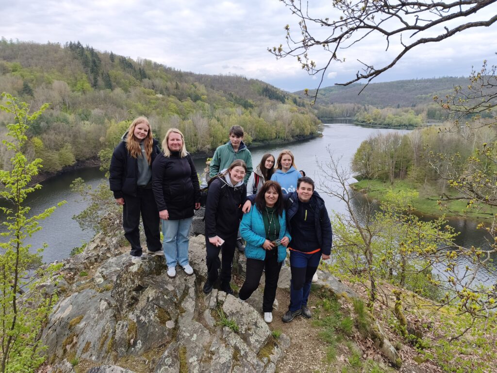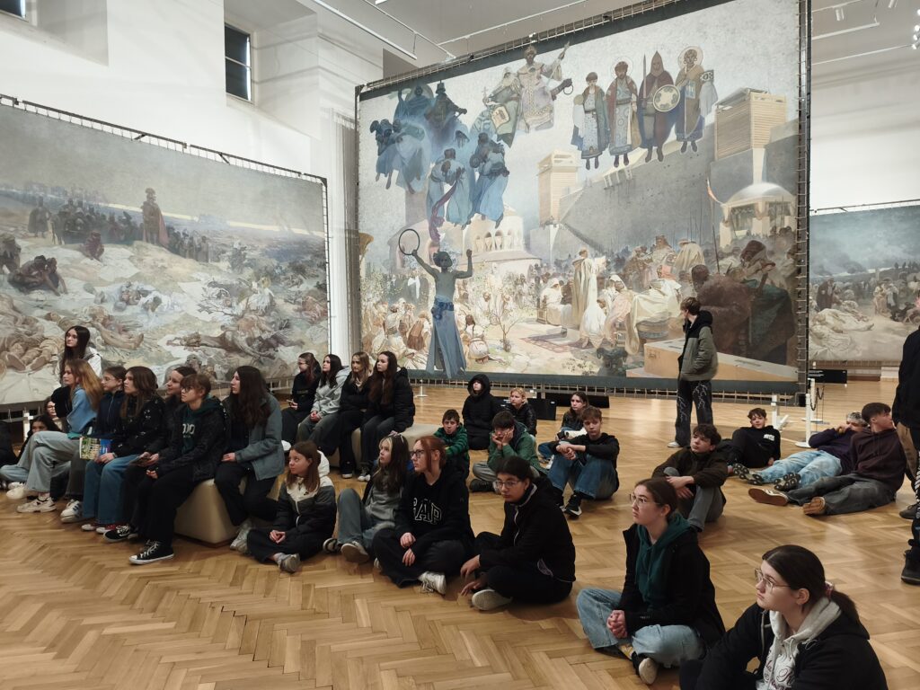 V úterý 21. dubna se žáci 8. a 9. tříd zúčastnili exkurze, která propojila umění, přírodu i moderní technologie. První zastávkou byla výstava Slovanské epopeje Alfonse Muchy v Moravském Krumlově, kde se žáci dozvěděli o životě a tvorbě malíře, prohlédli si jeho díla a zjistili, co se v jednotlivých obrazech skrývá. Poté se přesunuli k vodní nádrži Dalešice. Zajímavostí je, že tato nádrž patří mezi nejvýše položené v České republice. Na závěr exkurze navštívili jadernou elektrárnu Dukovany, kde se dozvěděli, jak funguje výroba elektrické energie z