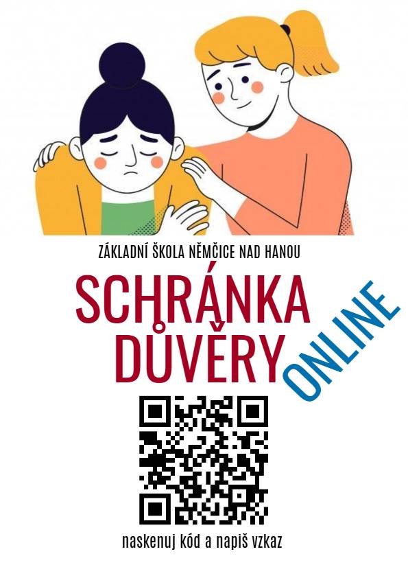 Na naší škole byla nově zřízena online schránka důvěry, která je určena jak pro žáky, tak i pro rodiče. Na stránku se dostanete kliknutím na odkaz níže nebo po naskenování QR kódu.